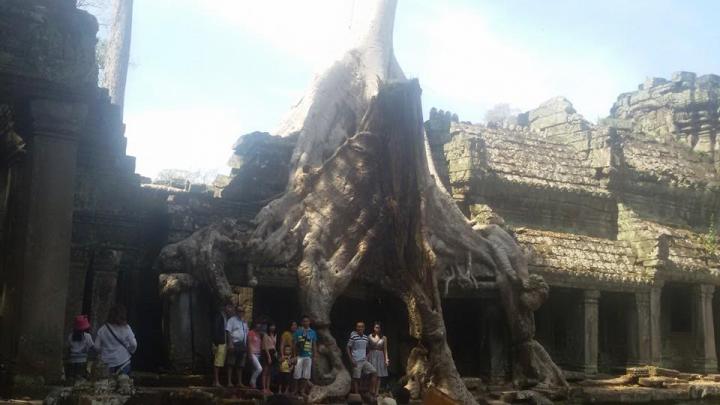 Ta Prohm overgrown temple – continues transfer to Ta Prohm - one of the most popular temples of the Angkor Complex. This temple was built in the memory of the King Jayavarman VII’s mother. When found by the French conservators at the end of the 19th century, they deliberately left this temple in the same condition as it was discovered, overgrown by strangler fig and silk-cotton trees, giving the temple a mystical and romantic appeal.