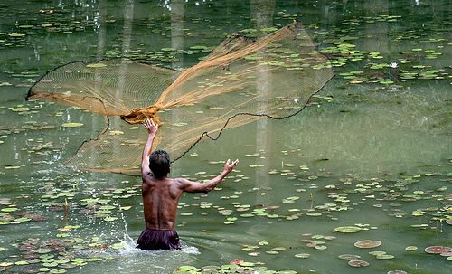 Chong Kneah floating village - transfer to the Phnom Krom pier for boat on Tonle Sap Lake to visit floating village of Chong Kneah at the edge of Tonle Sap Lake. Cambodia’s Great Lake, the Boueng Tonle Sap (Tonle Sap Lake) is the most prominent feature on the map of Cambodia – a huge dumbbell-shaped body of water stretching across the northwest section of the country. In the wet season, the Tonle Sap Lake is one of the largest freshwater lakes in Asia, swelling to an expansive 12,000km2. During the dry, half of the year the lake shrinks to as 3000 km2, draining into the Tonle Sap River, which meanders southeast eventually merging with the Mekong River at the “Chaktomuk” confluence of river opposite Phnom Penh.